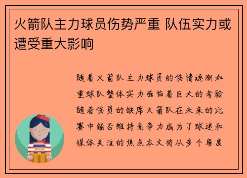 随着火箭队主力球员的伤情逐渐加重,球队整...