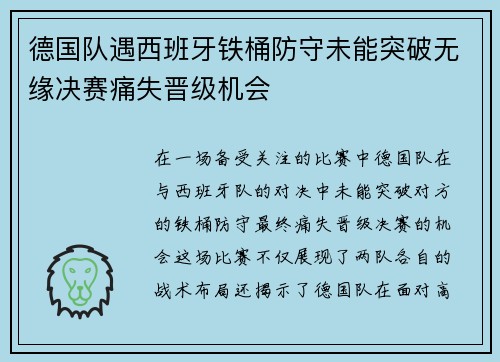 在一场备受关注的比赛中,德国队在与西班牙...