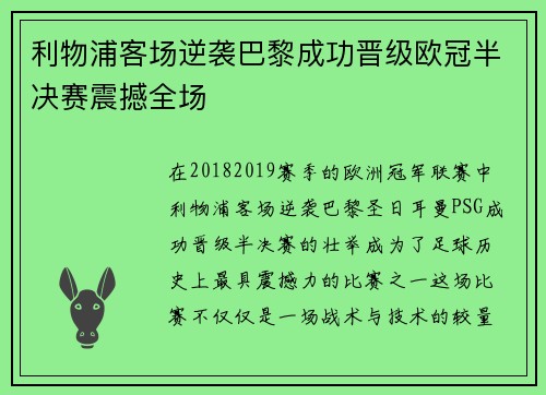 在欧洲足坛中,利物浦在客场对阵巴黎圣日耳...