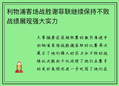 文章摘要:在英超联赛的激烈角逐中,利物浦...