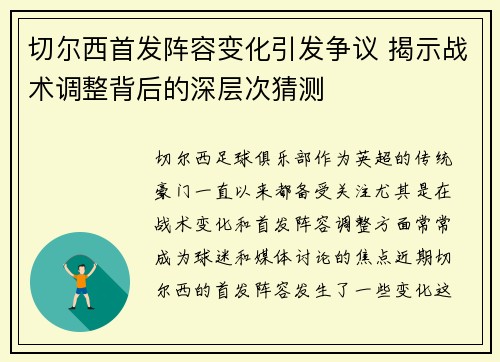 切尔西足球俱乐部作为英超的传统豪门,一直...