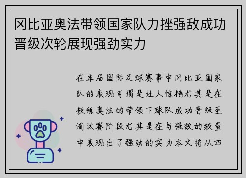 在本届国际足球赛事中,冈比亚国家队的表现...