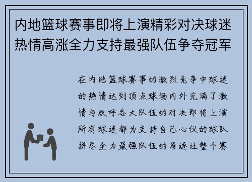 在内地篮球赛事的激烈竞争中,球迷的热情达...