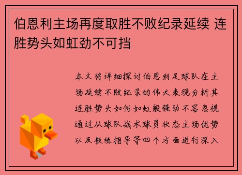本文将详细探讨伯恩利足球队在主场延续不败...