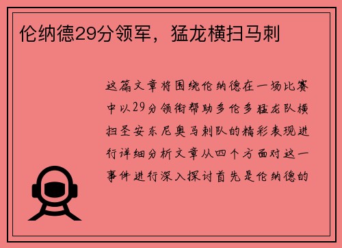 这篇文章将围绕伦纳德在一场比赛中以29分...