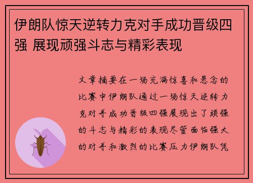 文章摘要:在一场充满惊喜和悬念的比赛中,...