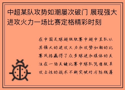 本文将回顾中超赛场上那些关键时刻的决定性...