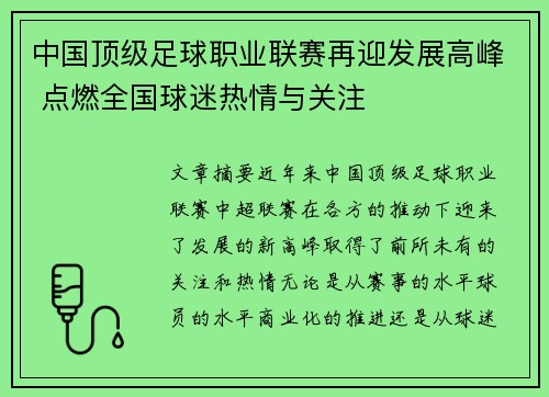 文章摘要:近年来,中国顶级足球职业联赛(...
