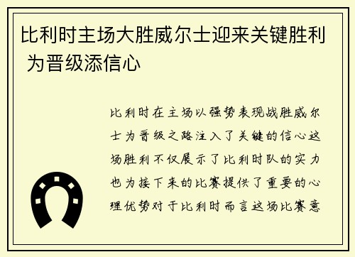 比利时在主场以强势表现战胜威尔士,为晋级...